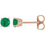 14K Rose Gold 2.5 mm Lab-Grown Emerald Earrings