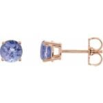 14K Rose Gold 5 mm Natural Tanzanite Earrings