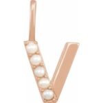 14K Rose Gold Cultured White Freshwater Pearl Initial V Charm/Pendant