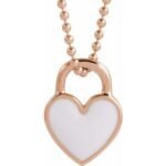 14K Rose Gold White Enamel Heart 18″ Necklace