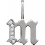 14K White Gold .06 CTW Natural Diamond Gothic Initial M Charm/Pendant