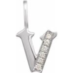 14K White Gold .06 CTW Natural Diamond Gothic Initial V Charm/Pendant