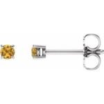 14K White Gold 2.5 mm Natural Yellow Sapphire Earrings