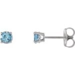 14K White Gold 4 mm Natural Aquamarine Earrings