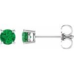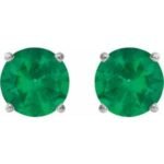 14K White Gold 4 mm Natural Emerald Earrings