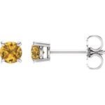 14K White Gold 4 mm Natural Yellow Sapphire Earrings