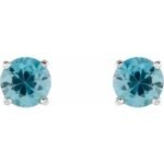 14K White Gold 6 mm Natural Blue Zircon Earrings