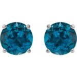 14K White Gold 6 mm Natural London Blue Topaz Earrings