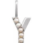 14K White Gold Cultured White Freshwater Pearl Initial Y Charm/Pendant