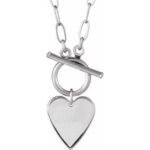 14K White Gold Engravable Heart Toggle 18″ Necklace