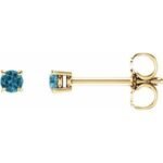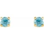 14K Yellow Gold 2.5 mm Natural Blue Zircon Earrings