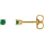 14K Yellow Gold 2.5 mm Natural Emerald Earrings