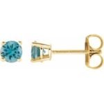 14K Yellow Gold 4 mm Natural Blue Zircon Earrings