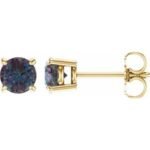 14K Yellow Gold 5 mm Lab-Grown Alexandrite Earrings