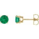 14K Yellow Gold 5 mm Lab-Grown Emerald Earrings