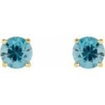 14K Yellow Gold 5 mm Natural Blue Zircon Earrings