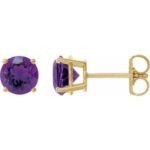 14K Yellow Gold 6 mm Natural Amethyst Earrings
