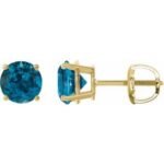 14K Yellow Gold 6 mm Natural London Blue Topaz Earrings