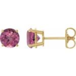14K Yellow Gold 6 mm Natural Pink Tourmaline Earrings