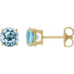 14K Yellow Gold 6 mm Natural Sky Blue Topaz Earrings