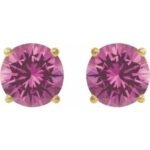 14K Yellow Gold 8 mm Lab-Grown Pink Sapphire Earrings