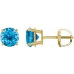 14K Yellow Gold 8 mm Natural Swiss Blue Topaz Earrings