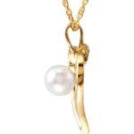 14K Yellow Gold Cultured White Akoya Pearl Heart 18″ Necklace