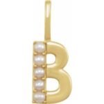 14K Yellow Gold Cultured White Freshwater Pearl Initial B Charm/Pendant