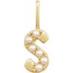 14K Yellow Gold Cultured White Freshwater Pearl Initial S Charm/Pendant