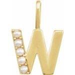 14K Yellow Gold Cultured White Freshwater Pearl Initial W Charm/Pendant