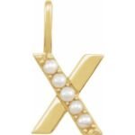 14K Yellow Gold Cultured White Freshwater Pearl Initial X Charm/Pendant