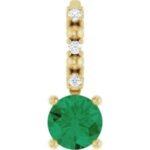 14K Yellow Gold Imitation Emerald & .01 CTW Natural Diamond Charm/Pendant