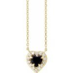 14K Yellow Gold Natural Onyx & 1/8 CTW Natural Diamond French-Set Halo-Style 18″ Necklace