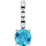 Platinum Imitation Blue Zircon & .01 CTW Natural Diamond Charm/Pendant