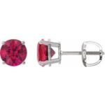 Sterling Silver 8 mm Lab-Grown Ruby Earrings