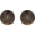 Sterling Silver 8 mm Natural Smoky Quartz Earrings