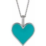 Sterling Silver Light Turquoise Enamel Heart 18″ Necklace