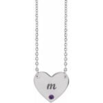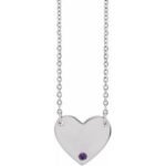 Sterling Silver Natural Amethyst Engravable Heart 18″ Necklace