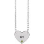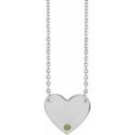 Sterling Silver Natural Peridot Engravable Heart 18″ Necklace