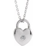 Sterling Silver Natural White Sapphire Heart Lock 18″ Necklace