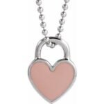 Sterling Silver Pink Enamel Heart 18″ Necklace